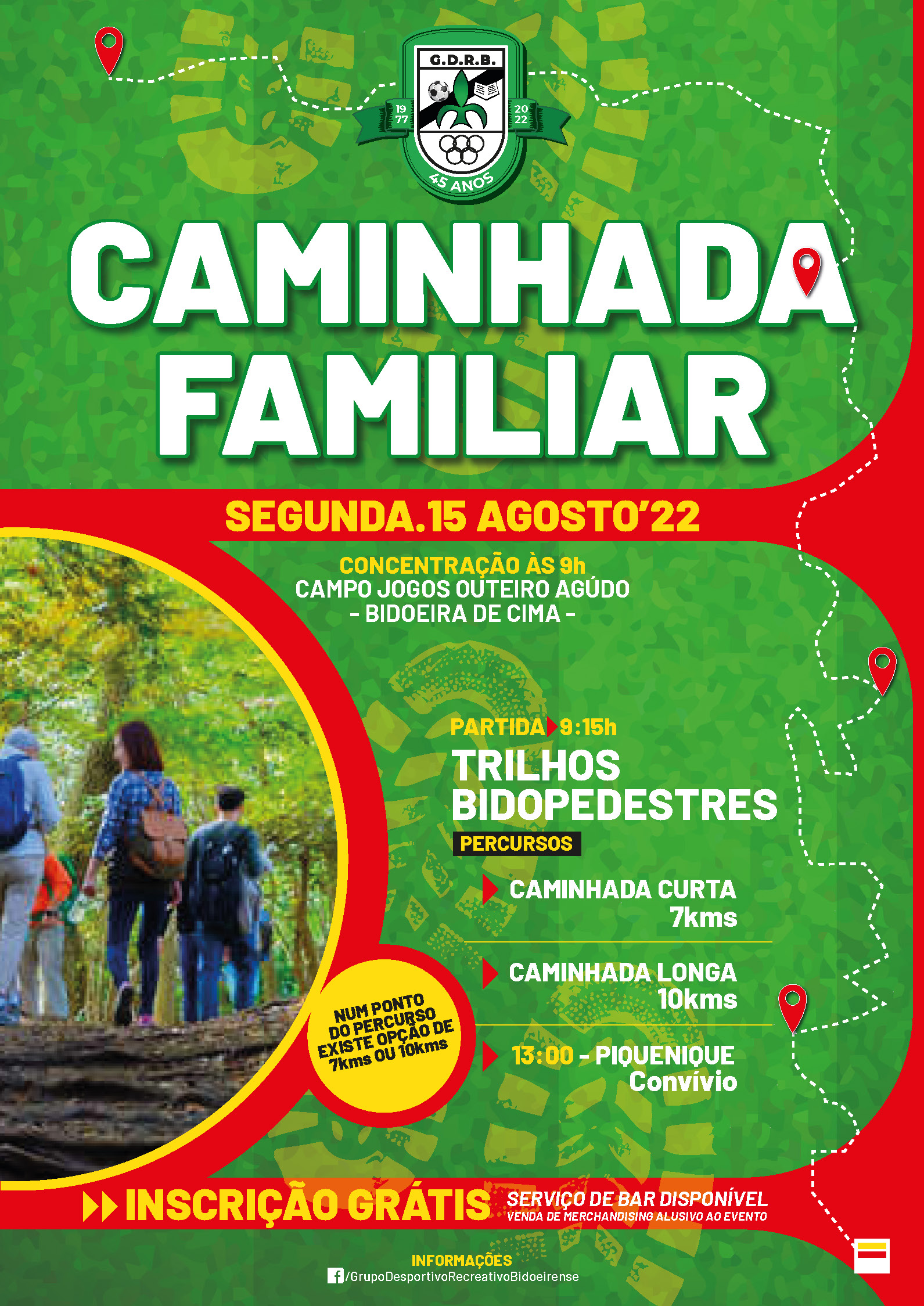 O Grupo Desportivo e Recreativo de Bidoeira de Cima está a organizar uma Caminhada Familiar.